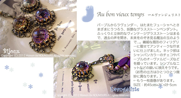 ペンダントのヴィンテージグラスストーンは紫を敬遠しがちな私には挑戦でしたが、